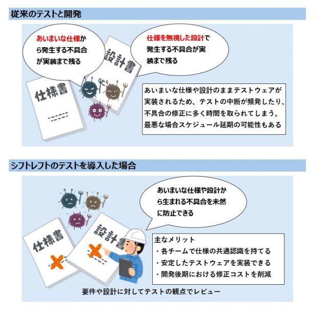 このように開発初期からテストが関わることで不具合の早期発見だけでなく、